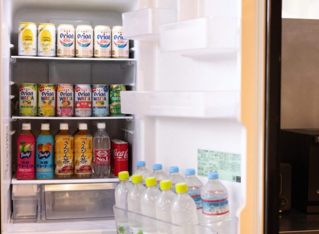 The in-room refrigerator is always stocked with 10+ varieties of drinks, from Okinawan beer to soft drinks, all free-flow with no extra charge.