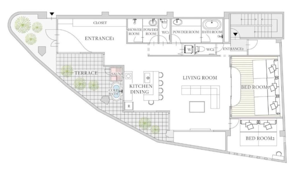 Includes a sauna and private cold bath for complete wellness cycles.