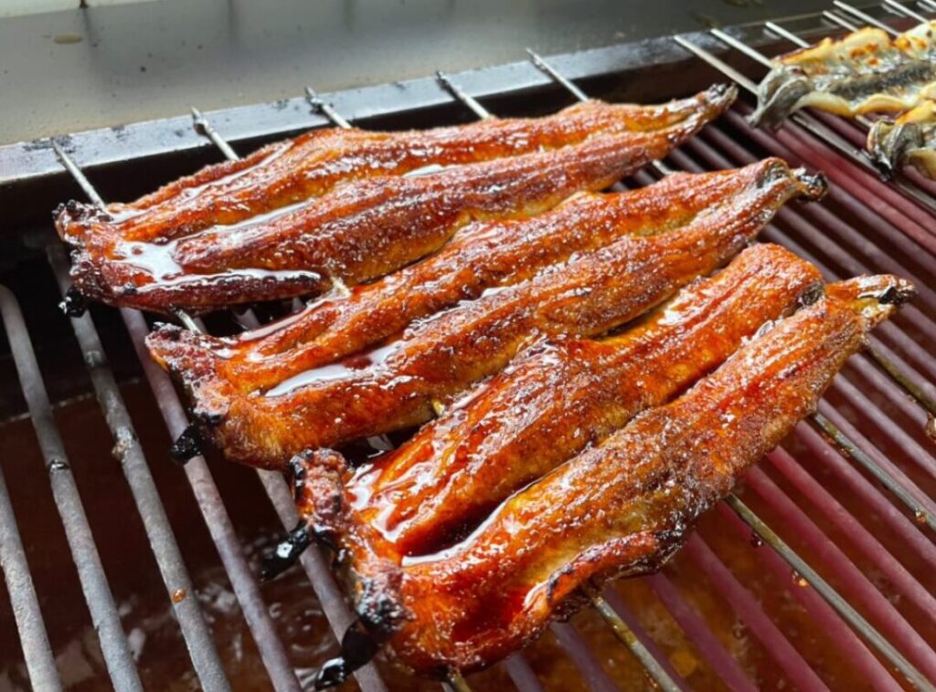 The eel, sourced from Mikawa Isshiki in Aichi, is raised for several days in the spring water before preparation, transforming it into the premium “Ao-unagi.”