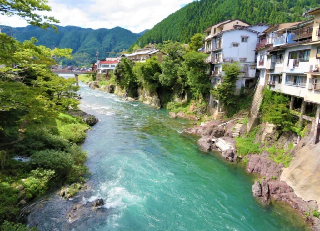 The Yoshida River, designated one of “Gifu’s 50 Famous Waters,” flows through the heart of town.