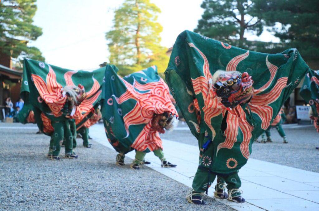 The Goshinko procession sees the deity of Sakurayama Hachiman Shrine paraded through the town. Hundreds of participants in traditional attire, accompanied by gagaku court music, create a majestic scene straight out of history.