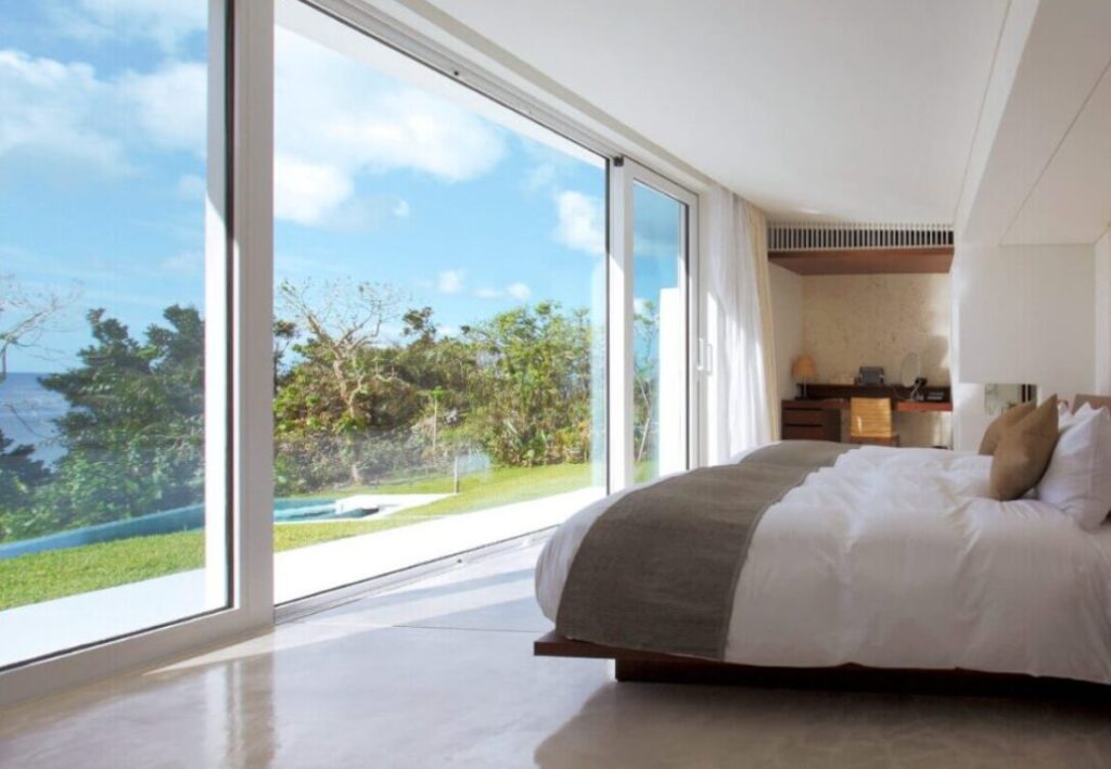 From the large wall-to-wall windows, abundant natural light from Ishigaki Island pours in. Feel the sea breeze and the scent of the trees—an exquisite island resort experience.
