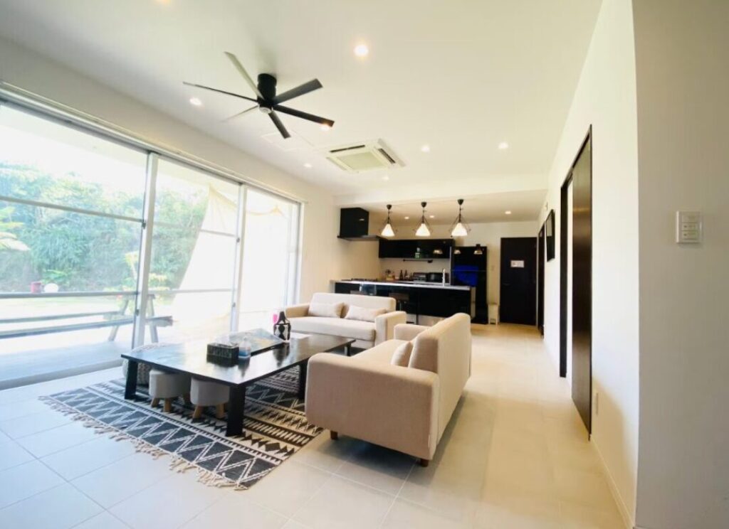 Just a 15-minute drive from the airport and a 10-minute walk to Sunayama Beach, it offers a prime location to fully enjoy the island’s signature views of the sea and sky.