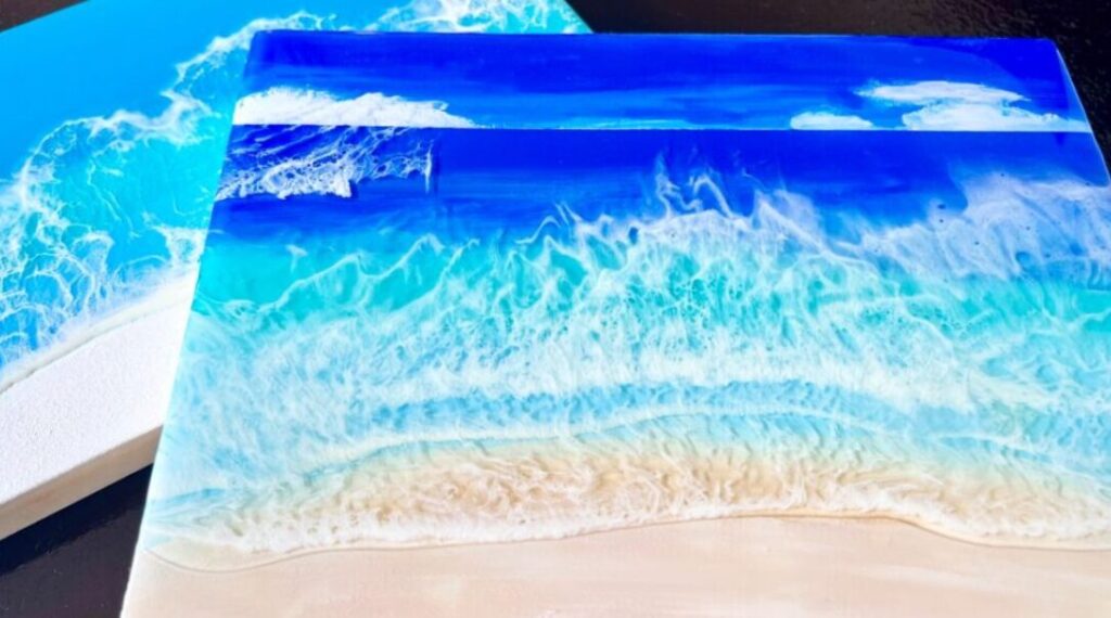 In this hands-on resin workshop, you layer your favorite colors into transparent resin to create a one-of-a-kind “Ocean Art.”